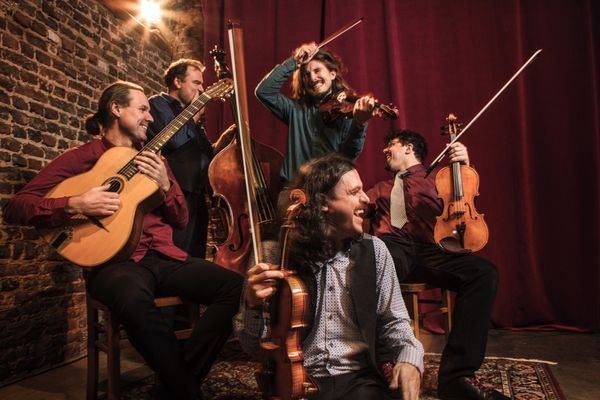En deux coups d’archets, vous voici replongé au mitant des années trente. Et pourtant, vous êtes bien en 2024 ! Depuis plus de dix ans d’indéfectible fidélité, Tcha Limberger (violon et chant), Renaud Crols (violon), Alex Tripodi (violon alto), Renaud Dardenne (guitare) et Sam Gerstmans (contrebasse), gardent bien vivace le swing.