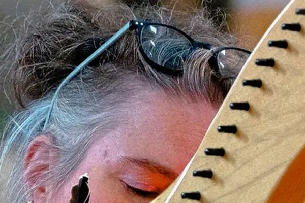 Alix Colin habite le quartier et joue de la harpe à leviers (ou harpe celtique).