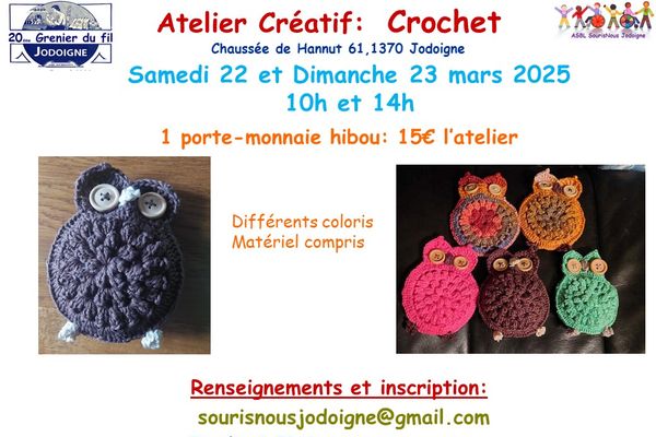 réalisant un porte-monnaie hibou au crochet. Cet atelier se déroulera le samedi