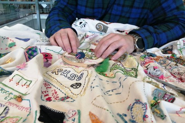Au départ d’une grande carte de la commune, les participant·es pourront y déposer leurs imaginaires avec des fils de cotons, des perles, des petits objets, des morceaux de tissus… grâce à la technique de la broderie à la main levée.